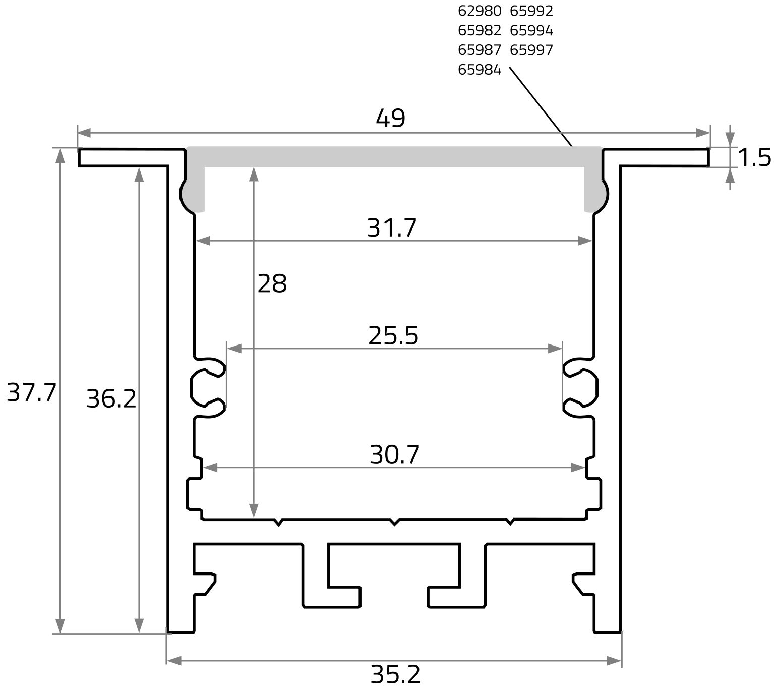 - LxWxH in mm: 2.000 x 48.7 x 37.5