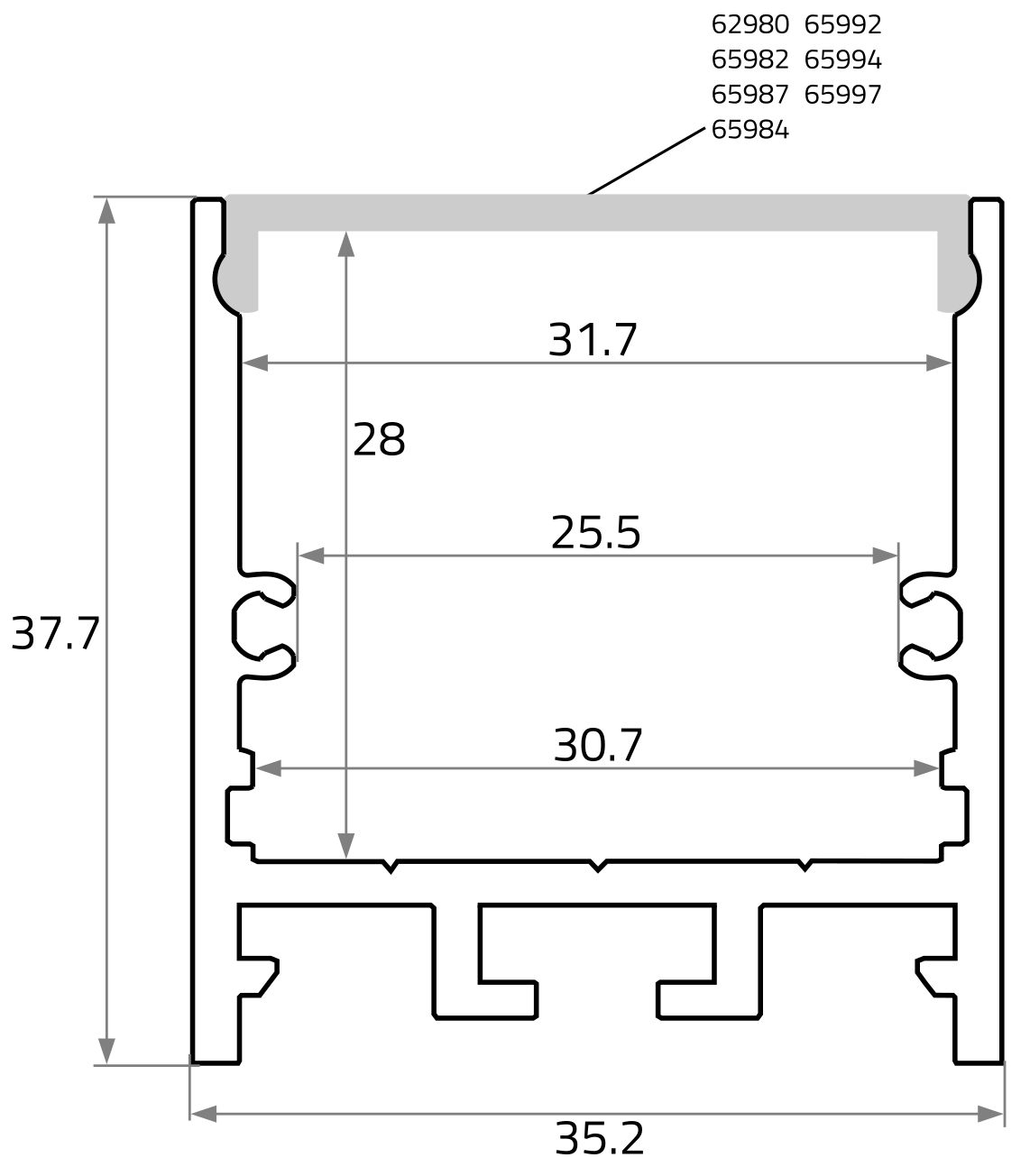 - LxWxH in mm: 2.000 x 35 x 37.5