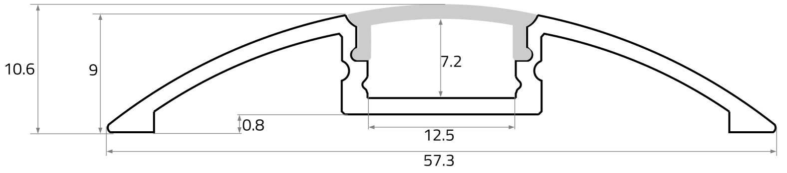- LxWxH in mm: 2,000 x 57.3 x 9