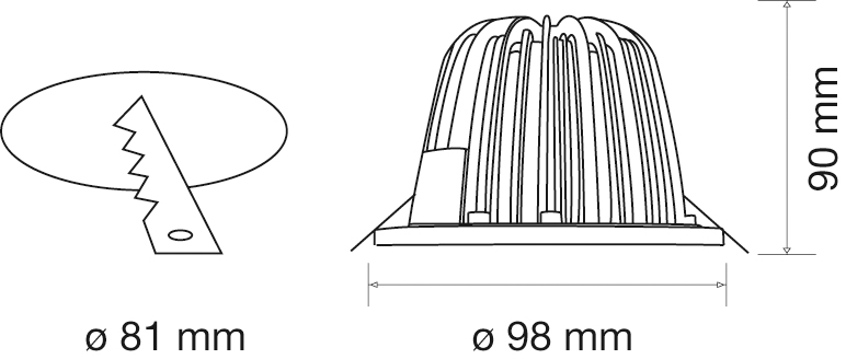 - Ceiling cut-out: 81 mm