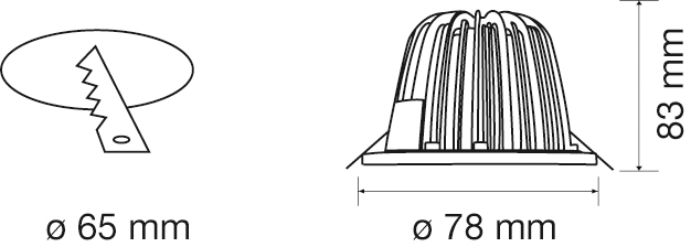 - Ceiling cut-out: 65 mm