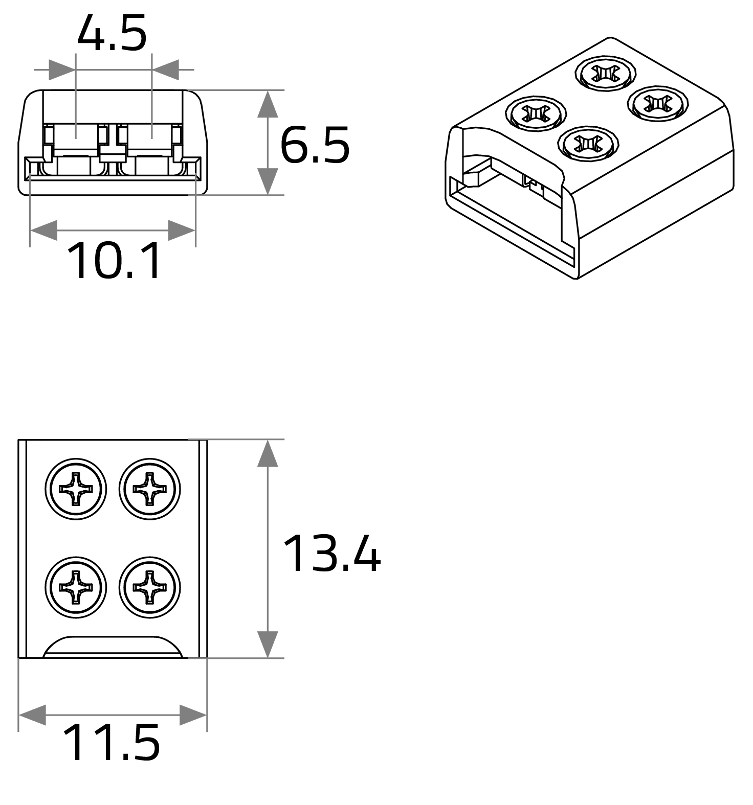 - LxWxH in mm: 13.4 x 11.5 x 6.5