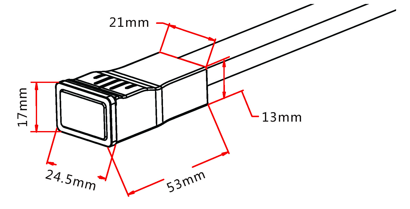 - LxWxH in mm: 57 x 26,5 x 17