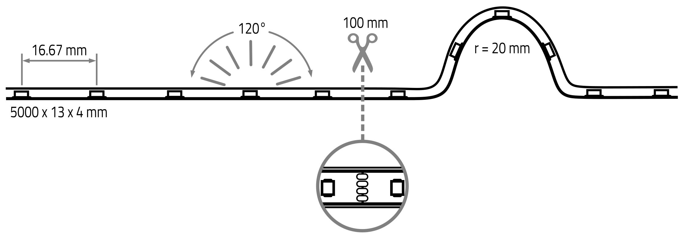 - RGB 12 Volt: Separable Every 10 cm or 3 LEDs