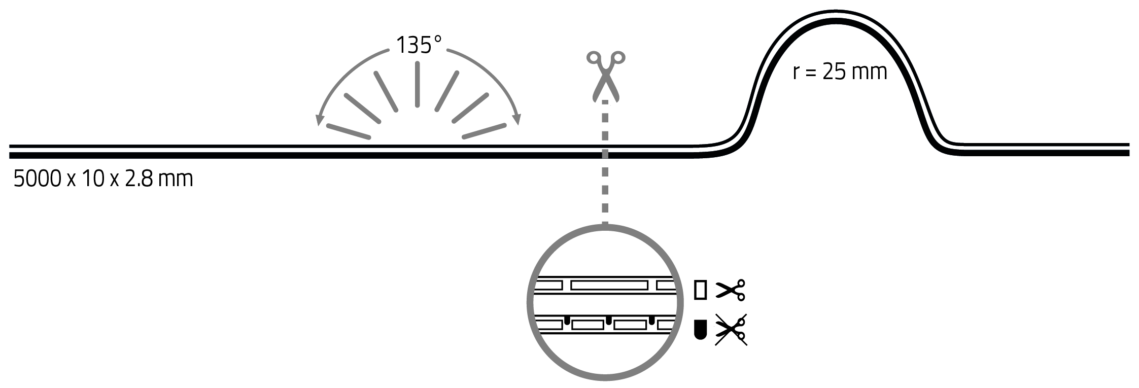 - Delivery contents: 5 meter roll with 300 mm connection cable