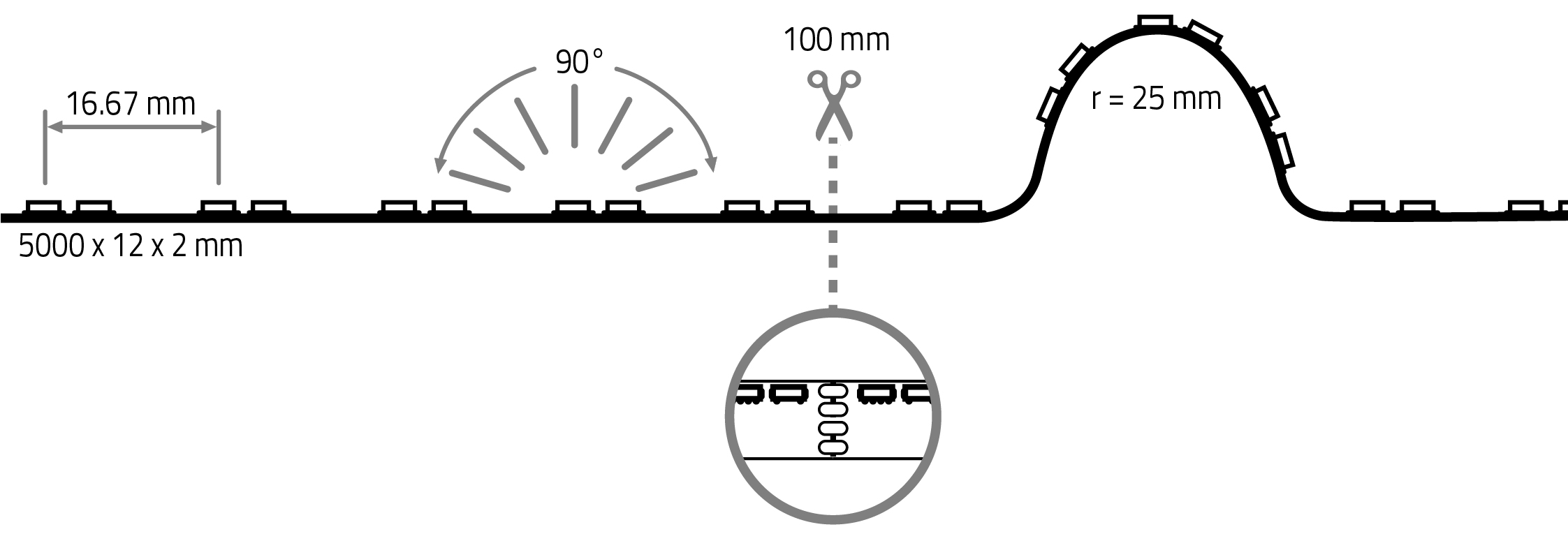 - can be seperated every 100 mm or 12 LEDs