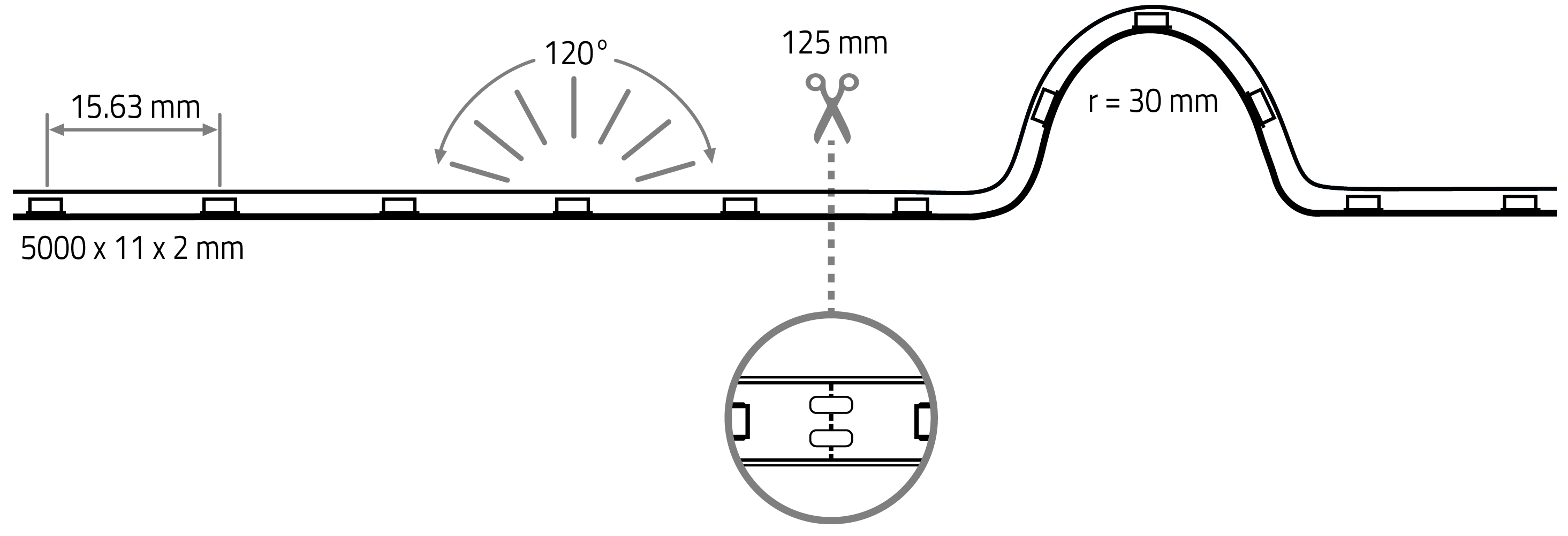 - Delivery contents: 5 meter roll with 300 mm connecting cable