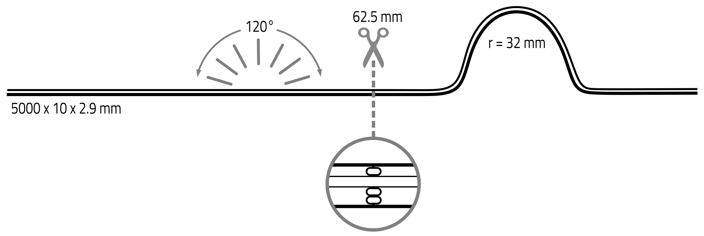 - LxWxH in mm: 5,000 x 10 x 2.9